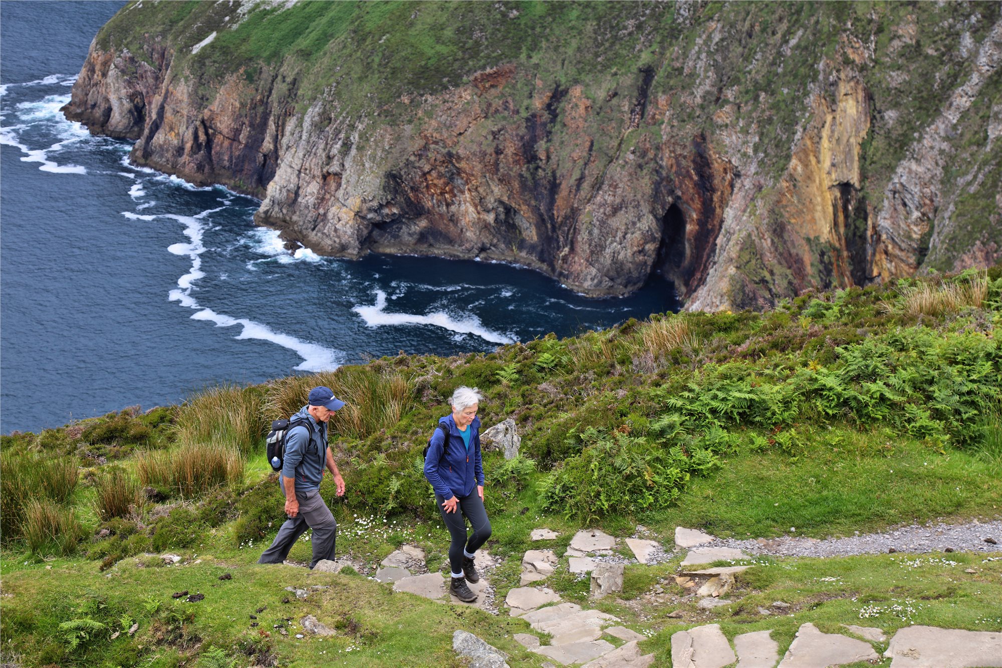 6. den: snídaně, přejezd k výšlapu na SLIEVE LEAGUE (Sliabh Liag) 576 a 596 mnm, 10 km, 5 h, po poutní cestě PILGRIM PATH, pro zdatnější možnost prodloužení obtížnější cestou k vrcholu 596 mnm. Zpět do Teileann a ke spodnímu parkovišti a cca 30 minut pěšky k vyhlídce na jedny z nejvyšších útesů v Evropě. Návrat do místa ubytování. Večeře.