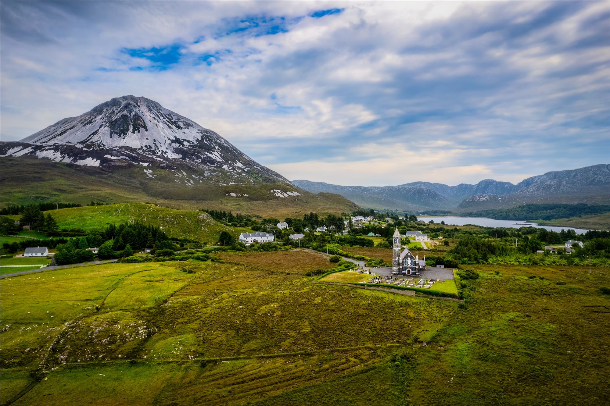 4. den: snídaně, během přejezdu uvidíme v klášterním okrsku ve FAHAN St.Muras Cross ze 7.století, vyjedeme na kopec k pevnosti GRIANAN OF AILEACH, rekonstrukci bývalého sídla království Ailech a konečně dorazíme na východiště k výšlapu na nejvyšší kopec Donegalu ERRIGAL (An Eragail) 751 mnm, 5,5 km, 3 h, stezka je již pár let upravená a obchází původní mokrou pasáž ve spodní části cesty. Zastávka u ikonického dolmenu KILCLOONEY DOLMEN. Večer ubytování (3 noci na jednom místě). Večeře.