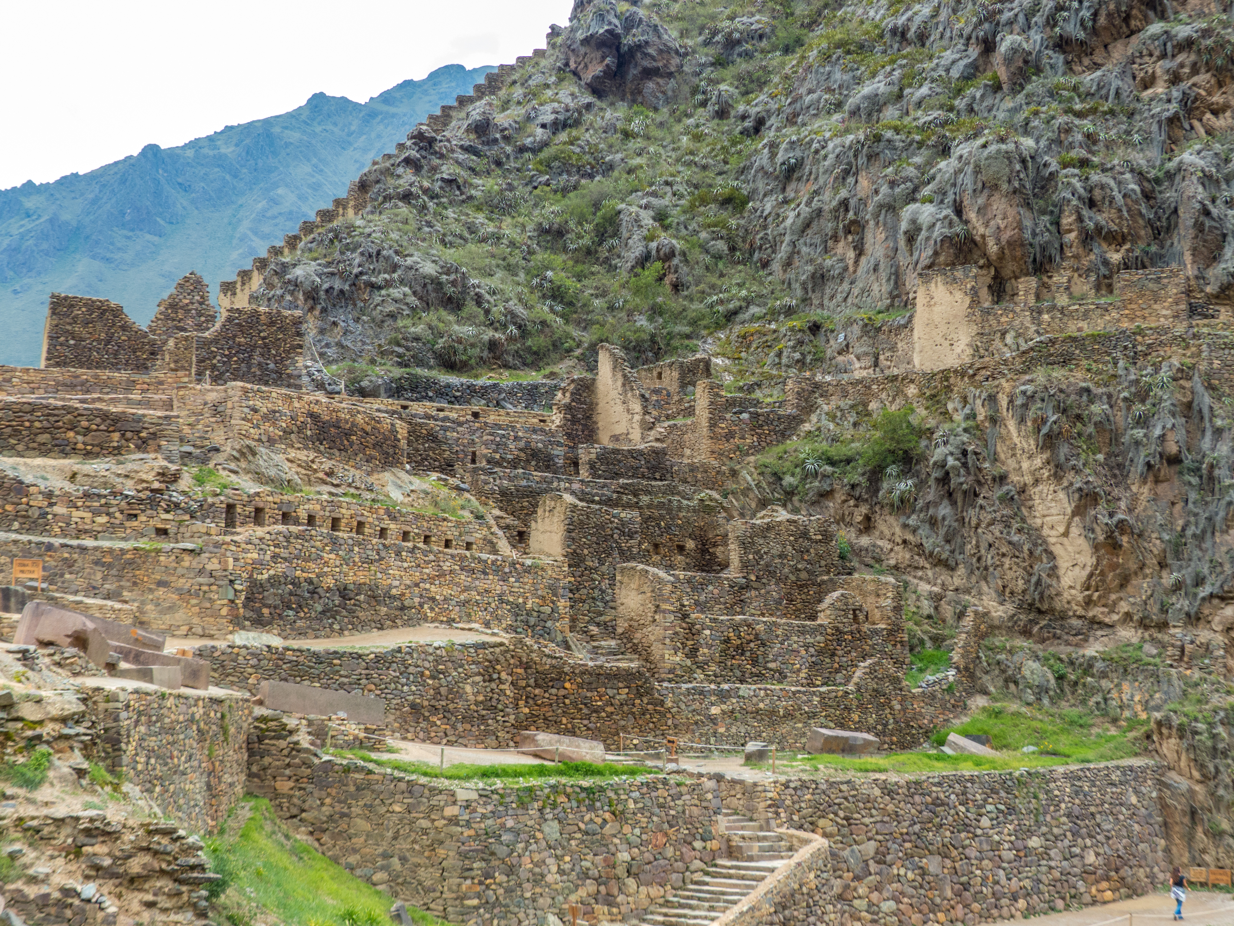 Rozlehlé opevněné město s vyvýšeným hradem Intihuatana je jedním z nejlepších příkladů vrcholné incké architektury, využívající dokonale opracované kamenné kvádry. Koneckonců původní incké části staveb přežily i velká zemětřesení v oblasti Cuzca v 18. století. Na terasách nad městem se pěstovala hlavně kvalitní kukuřice pro spotřebu na dvoře Inky.